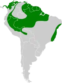 - R. o. guianensis McConnell, 1911 — південна Венесуела (східний Амасонас), Болівар, Гвіана і північна Бразилія (на схід від Ріу-Неґру, на південь до Амазонки);