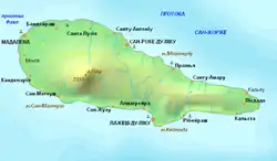 разом поділені на 17 муніципальних громад. Найбільшим населеним пунктом є селище Мадалена з кількістю мешканців трохи більше 6 тис. осіб, що знаходиться у північно-західній частині острова. Там же, поблизу населеного пункту Бандейраш, знаходиться новий сучасний аеропорт регіонального значення, з якого виконуються регулярні рейси у трьох основним напрямках: Лісабон, Понта-Делгада та Терсейра. Усього на острові мешкає близько 15 тис. осіб (станом на 2001 рік).