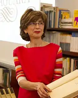 ![]() Пілар Дель Рьйо у бібліотеці Фонду Жозе Сарамагу | |