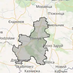 Повіт знаходиться у південній частині воєводства. Адміністративний центр — місто Пінчів. Станом на 1.01.2008 населення становить 41 811 осіб, площа 612,85 км².