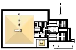 Пірамідний комплекс слід моделі, встановленої в період правління Джедефра, та в свою чергу успадковується від поховальних комплексів Абусіра.