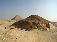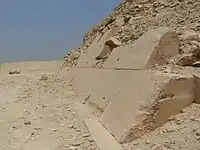 Face ouest de la pyramide d'Ounas avec une partie de son revêtement