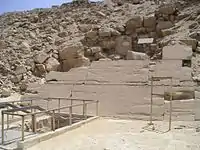 Face nord de la pyramide d'Ounas avec l'accès aux appartements funéraires