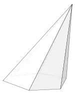 Пірамі́да( грец. вогонь на середині) (також рогівниця, гостриця, остриця) — багатогранник, який складається з плоского багатокутника і точки (яка не лежить у площині основи) та всіх відрізків, що сполучають вершину піраміди з точками основи. Відрізки, що сполучають вершину піраміди з вершинами основи, називаються бічними ребрами.