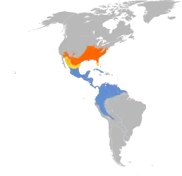 Влітку населяє дубові і галерейні ліси в центральній і південній частині США та на півночі Мексики. Восени мігрує на південь і зимує у центральній і південній частинах Мексики, в Центральній Америці і на північному заході Південної Америки (до Перу і західної Бразилії), де населяє тропічні ліси.
