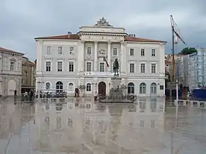 Стоїть на північно-західній стороні площі Тартіні в Пірані і є визначною пам'яткою міста. Триповерхова будівля[уточнити] домінує над цією частиною площі. Побудована у 1879 році на місці старої ратуші[2] за планами архітектора Джованні Рігетті[3], стиль — неоренесанс.