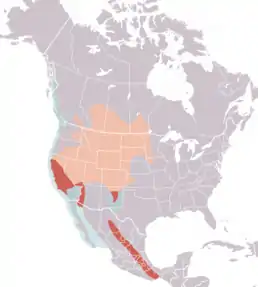 Птах гніздиться на великих озерах на заході Північної Америки. Взимку мігрує на тихоокеанське узбережжя. Деякі птахи зимують на узбережжі Мексиканської затоки. Популяції в Каліфорнії, Неваді, Аризоні та Мексиці не мігрують, залишаючись в гніздовому ареалі впродовж всього року.