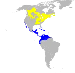 Поширені у помірній кліматичній зоні пінічноамериканського континенту більше на сході і півночі і трохи менше на заході Сполучених Штатів та більшій частині Канади крім північних районів. На зиму мігрує до Центральної і північної частини Південної Америки. Бували спорадичні випадки зальоту до Європи.