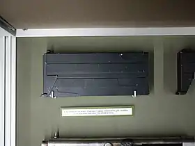Магазин коробчастого типу на 25 набоїв (існував варіант на 32 набої) вставляється в пістолетне руків'я. Прицільні пристосування складного типу.