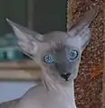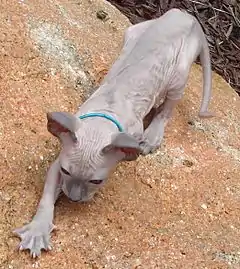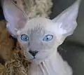 Шкіра тонка, надлишкова, у складках. Можлива залишкова шерсть на муфточках в основі вух, на мордочці, лапах і нижніх частинах кінцівок, хвості. У холодний час шерсть на корпусі трохи помітніша. Вібриси звиті. У дорослих тварин можуть бути обламані або відсутні.