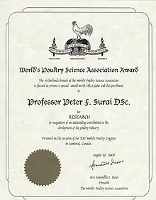 - Dr. Peter Surai. UK — Sumy National Agrarian University Ukraine. Title: Natural antioxidants and stresses in poultry production: from vitamins to vitagenes. Current: Index: Invited Speakers (англ.). Beijing, China: The XXV World's Poultry Congress 2016; Chinese Association of Animal Science and Veterinary Medicine. Архів оригіналу за 18 квітня 2017. Процитовано 30 липня 2017.