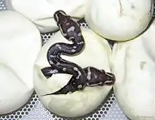 Відкладає 4-5 яєць. Молодь, що вилупилися, сягає 43-46 см завдовжки.