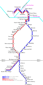 В місті дві лінії; Червона та Блакитна. Обидві лінії починаються на станції «Allegheny», потім спільно використовують підземну ділянку в центрі міста та розходяться після станції South Hills Junction. Після декількох станцій лінії знов сходяться на станції St. Anne's та мають ще одну спільну ділянку з 3 станції після яких прямують до кінцевих станцій.