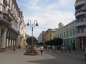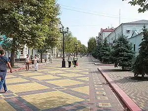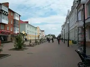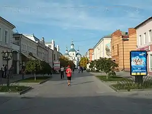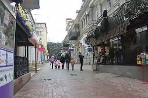 Частина Дворцової вулиці. Рішення про перетворення вулиці на пішохідну з'явилося ще в 2008 році, але тільки в 2011 році влада міста нарешті встановила огорожі, та автомобілі перестали заїжджати на вулицю. Вздовж вулиці збереглися будинки російської архітектури 19 сторіччя, зараз йде поетапна реконструкція їх фасадів.