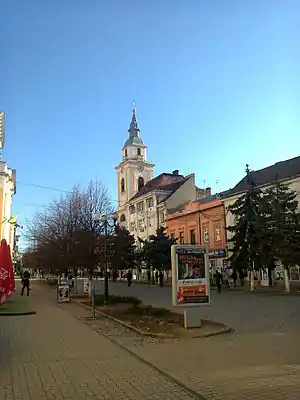 Хоча вона називається площею, проте площею є лише з самого початку, а потім має вигляд звичайної вулиці. Площа багата архітектурою. Напевно, сама велична будівля міста — збудований у 1908—1909 за проектом Ференця Яблонського в стилі бароко палац суду. Зараз він відреставрований, в ньому розміщений Закарпатський угорський інститут імені Ференца Ракоці II з угорською мовою навчання. Іншою визначною пам'яткою площі є костел реформаторів, найвища культова будівля міста. Як і всюди на Закарпатті, є тут і взірці конструктивізму, як більш вдалі (будівля на площі Кошута,2), так і менш вдалі (колишня синагога, яку перебудували під театр).