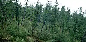 П'яний ліс у Сибіру, спричинений підтаваннями вічної мерзлоти. Фото НАСА.