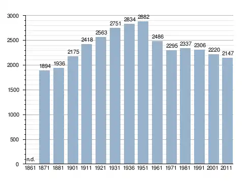 Станом на 31 грудня 2014 року в муніципалітеті офіційно проживало 149 іноземців з 18 країн, серед них 65 громадян країн Євросоюзу та 6 громадян України.[4]