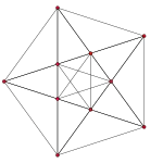 K5 повний граф часто малюють як правильний п'ятикутник що має всі 10 з'єднаних ребер. Цей граф також представляє ортографічну проекцію 5-ти вершин і 10-ти ребер 5-комірника. Зрізаний 5-комірник, із вершинами на внутрішніх ребрах 5-комірника проектується в середині п'ятикутника.