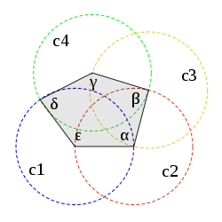 Одним із методів побудови правильного п'ятикутника в середині заданого кола є метод, описаний Річмондом[2].