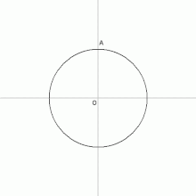 - Побудуємо вертикальну лінію через центр кола. Відмітимо точку перетину із колом літерою A.