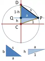 Потім знайдемо s за допомогою теореми Піфагора і трикутника, що ліворуч: