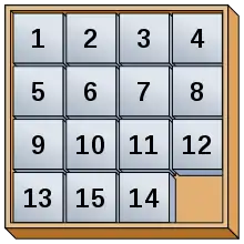 Спершу можна побачити, що серед перестановок, які можна здійснити є цикл (11, 12, 15) (здійснюючи рух південь-схід-північ-захід). Тоді можна здійснити перестановки так щоб числа 11 і 12 були фіксовані, а на місці 15 опиниться довільне інше число. Тобто в групі перестановок також є цикли (11, 12, x) для довільного x з множини 1-10, 13, 14. Такі цикли породжують групу парних перестановок, що й доводить твердження.