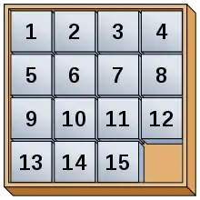 Позначивши пусту клітину числом 16, властивості головоломки можна одержувати із властивостей перестановок чисел 1..16. Так кожне переміщення у головоломці відповідає деякій транспозиції числа 16 і деякого іншого числа. Кожна така транспозиція змінює парність перестановки чисел. Якщо в початковому розміщенні пуста клітина розташована у нижньому правому куті, то на своє місце вона може повернутися за парну кількість кроків, тобто парність у цьому випадку не зміниться. Тому якщо початкова перестановка є непарною (як наприклад на другому малюнку) то головоломка розв'язку не має. У загальному випадку розв'язку не існує, якщо непарним є число де n — рівно нулю для парних початкових перестановок чисел 1..16 і одиниці для непарних, i, j — позиція пустої клітини.