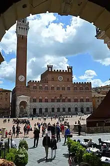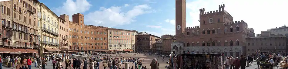 Двічі на рік по периметру площі проводять знамениті перегони (Паліо). Дорога по периметру засипається піском, по якому біжать коні, а після закінчення перегонів пісок ретельно зчищають.