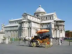 На честь перемоги пізанського флоту над сарацинами під Палермо в 1063 році, уряд Пізанської республіки вирішив збудувати величний кафедральний собор. Кошти на будівництво були зібрані з десятої частини доходів від пограбування Палермо та данини з Балеарських островів. Для будівництва собору запрошено архітектора Бусчето Джудіче, який розпочав роботи у 1064 році. При спорудженні собору поєднані різні стилі: елементи візантійської та мусульманської архітектури, романського стилю у його пізанському та ломбардському різновидах[1].