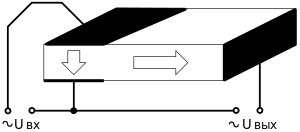 При поданні змінної напруги на електроди первинного кола, завдяки зворотному п'єзоелектричного ефекту виникають механічні напруження. Останні призводять до деформації пьезокристалу, яка завдяки прямому п'єзоелектричному ефекту викликає зміну напруги у вторинному колі.