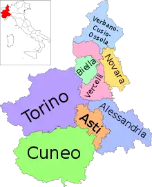 П'ємонт (італ. Piemonte) — регіон Італії. Розташований на півночі країни. Складається із провінцій Алессандрія, Асті, Б'єлла, Вербано-Кузіо-Оссола, Верчеллі, Кунео, Новара і Турин. Адміністративний центр — Турин. Площа — 25399 км², населення 4 466 509[1] осіб (2012).