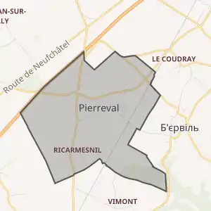 - Розташування муніципалітету П'єррваль на мапі Франції та сусідні муніципалітети