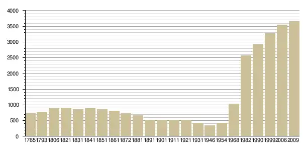 Динаміка населення (Baratier, Duby & Hildesheimer pour l’Ancien Régime ; Insee[3], EHESS[4] pour les chiffres issus des recensements légaux ):