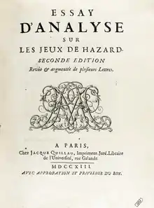 - de Montmort, P. R. . Essay d'analyse sur les jeux de hazard. Seconde Edition, Revue & augmentée de plusieurs Lettres. — Paris : Jacque Quillau, 1713.