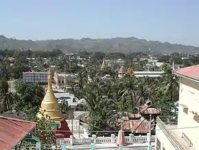 Місто знаходиться в північно-західній частині провінції, на лівому березі річки Іраваді, на відстані приблизно 130 кілометрів на північний захід від столиці країни Нейп'їдо. Абсолютна висота — 45 метрів над рівнем моря[1].