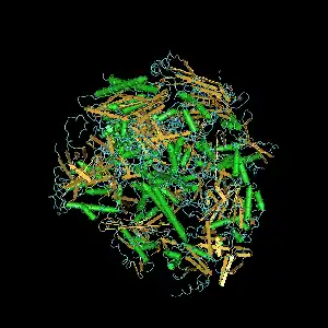 - RPB1 (ДНК-залежна РНК-полімераза субодиниця 1) — ензим, що в людському геномі кодується геном POLR2A та геном RPO21 у дріжджах. RPB1 — це найбільша субодиниця РНК-полімерази II. В поєднанні з деякими іншими субодиницями RPB1 утворює ДНК-зв'язуючий сайт полімерази — заглиблення, в якому ДНК зчитується у молекулу РНК.[8] Основними партнером по взаємодії є RPB8.[7]