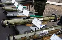 В серпні 2014 року у звільнених від російських терористів населених пунктах Гірське (Луганська область) та Вуглегірськ (Донецька область) було виявлено чимало російської зброї та набоїв до неї. Серед іншого, бійці Національної гвардії виявили реактивні штурмові гранати РШГ-1, виготовлені у 2013 році, 82-мм саморобний міномет, ПЗРК «Ігла», РПГ-26, снайперську гвинтівку Драгунова та карабін типу Браунінг (Browning BAR)[1][2] (ймовірно FN FNAR). Використана РШГ-1, привезена з Донбасу, була виставлена у «Музеї Новоросії» в Санкт-Петербурзі та підписана як РПО-А «Джміль».[3]