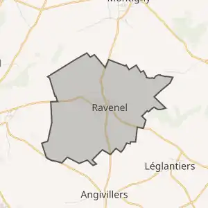 - Розташування муніципалітету Равенель на мапі Франції та сусідні муніципалітети