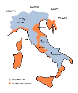 Відомий від 584 року як форпост проти наступу варварів, створений візантійським імператором Маврикієм. 568 року до північної Італії вторглись лангобарди під проводом короля Албойна. Захопивши низку міст, 569 року лангобарди взяли Мілан. Після трирічної облоги 572 року здалась Павія, яку лангобарди зробили своєю столицею. У подальшому вони захопили Тоскану. Далі лангобарди продовжитли просуватись до центральної та південної Італії, де заснували герцогства Сполето й Беневенто. Після вбивства Аьбойна 573 року держава лангобардів розпалась на кілька окремих герцогств (той період відомий під назвою «Правління герцогів»).
