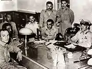 ![]() Члени РРК 1953 року. Справа наліво: генерал Мухаммед Наґіб, майор Абдель Хакім Амер (стоїть), підполковник Ґамаль Абдель Насер (сидить), майор Мохаммед Камаль ед-Дін Хуссейн (стоїть), майор Абдель Латіф аль-Богдаді, підполковник Анвар Садат, Юсеф Седдик, підполковник Закарія Мохі ед-Дін | |