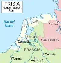 У 715 році Радбод виступив на допомогу повсталому Рагенфреду. Протягом 715 і 716 року фризи та нейстріци завдали поразки австразійському війську у битвах при Комп'єні (перемоги Нейстрії) та Кельні (перемога Радбода) відповідно. В результаті вдалося відвоювати Дорестад, Утрехт і Маастрихт. за цим звів нанівець усю місіонерську діяльність Вілліброрда, переслідуючи християн та руйнуючи церкви.