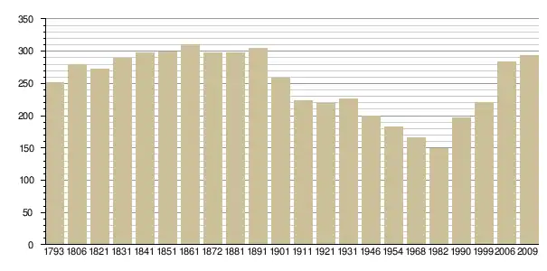 Динаміка населення (base Cassini de l'EHESS pour les nombres retenus jusque 1962[3], base Insee à partir de 1968 (population sans doubles comptes puis population municipale à partir de 2006)[4] · [5] ):