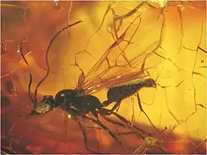 Викопна мурашка Aphaenogaster dlusskyana Radchenko & Perkovsky, 2016 в таймирському бурштині (крейдовий період), описана вперше для науки О. Г. Радченком та Є. Е. Перковським