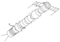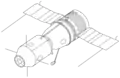 Союз-7К-ЛОК — місячний орбітальний корабель. Вид спереду та збоку. Видно стикувальну систему.