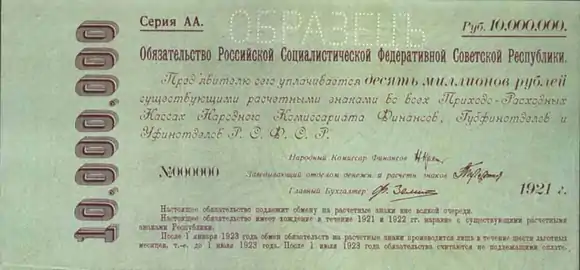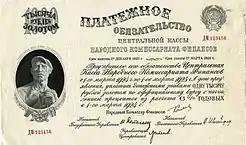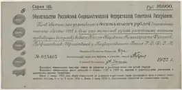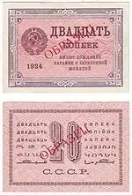 | Емісійний центр | Народний комісаріат фінансів РРФСР (1919—1921) Держбанк РРФСР (1921—1923) Держбанк СРСР (1923—1991) Центральний Банк Росії (1991—1992) Ленінградський | ||||