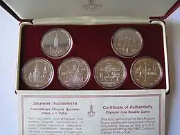 - Серебряные юбилейные и памятные монеты СССР. russian-money.ru. Процитовано 1 лютого 2015. (рос.)