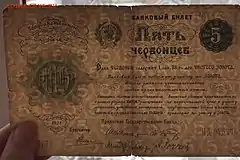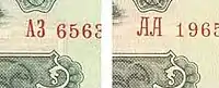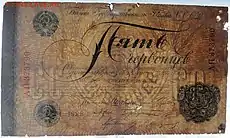 | Банкноти | 1, 3, 5, 10, 25, 50, 100, 200, 500, 1000 карбованців | ||||