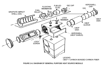 Для мінімізації ризику викиду радіоактивного матеріалу паливо зберігається в окремих модульних агрегатах із власним теплозахистом. Вони оточені шаром металу іридію і укладені у високоміцні графітові блоки. Ці два матеріали є корозійними та жаростійкими. Графітові блоки оточує аерозольна оболонка, призначена для захисту всієї збірки від тепла, що повертається в земну атмосферу. Плутонієве паливо також зберігається в керамічній формі, яка є термостійкою, мінімізуючи ризик випаровування та аерозолізації. Кераміка також дуже нерозчинна.