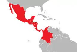 Мешкає на півдні Мексики і в Центральній Америці, а також інколи на півночі Колумбії.