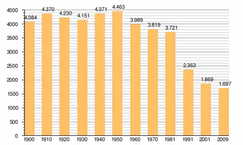, населення муніципалітету — 1697 ос. (2009); густота населення — 23.53 осіб/км² .